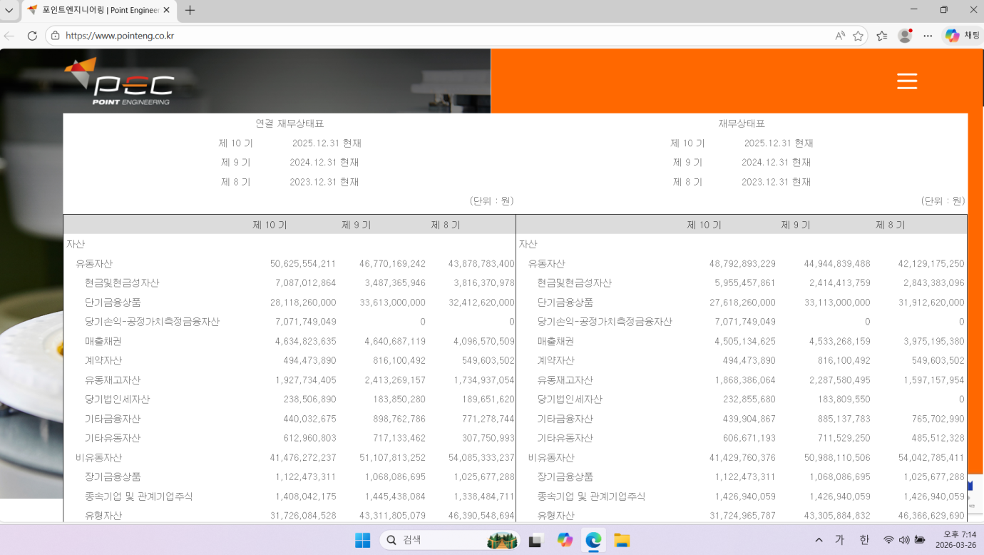 제10기 연결▪별도 재무상태표는 2026년 3월 26일 홈페이지 "Photo게시판" 및 "팝업"으로 게시되어 있었으나 홈페이지 개편으로 게시판으로 이동하여 게시됨을 안내 드립니다.